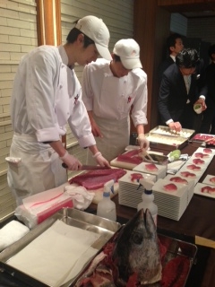 オープニングは「ひっさげマグロ」の解体&お寿司が握られました。
