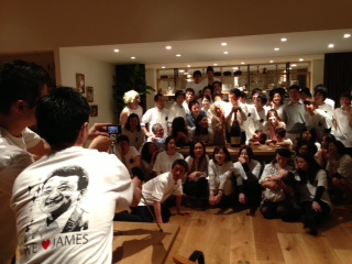 2013/04/24 23:59 HAPPY BIRTHDAY EVE EVE! こんにちは。 ティーエスインターナショナルの泉岡です。 本日は久しぶりの雨でしたが…。 神戸ではそんなのものともせず、 我らが社長のバースデイパーティが開かれました。 みんなで社長の顔のプリントされた、 WE ? JAMES のTシャツを着てお祝いした50回目のバースデイ。 ステキな50年目をお過ごしください。 いつまでもステキな社長でいてください。 HAPPY BIRTHDAY! では、また。
